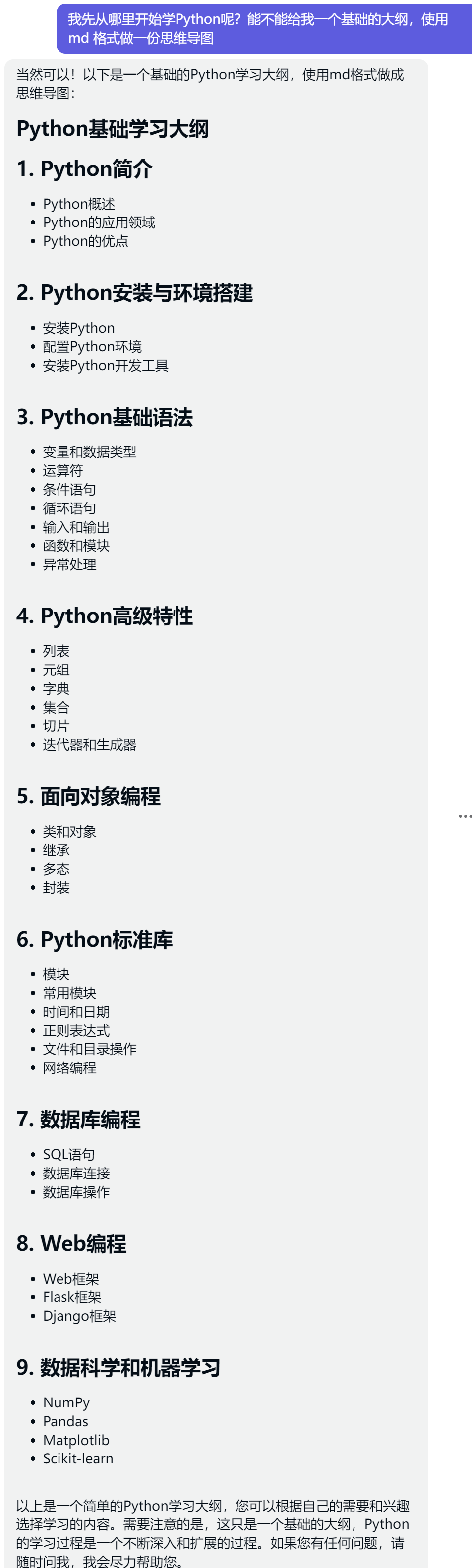 你也可以让他给你更详细的回答,比如给出一个大纲,然后将这个大纲转换成思维导图: