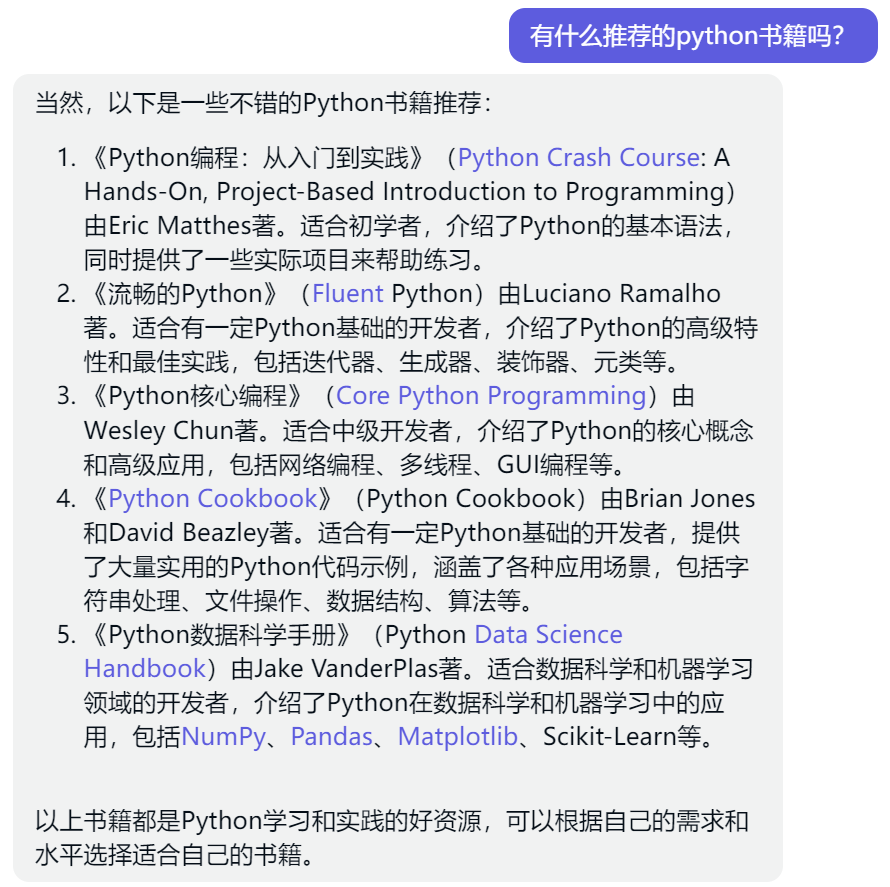Python入门和提高的书籍不胜枚举,但是哪些书籍更适合从入门到提高呢?我咨询了一下ChatGPT。