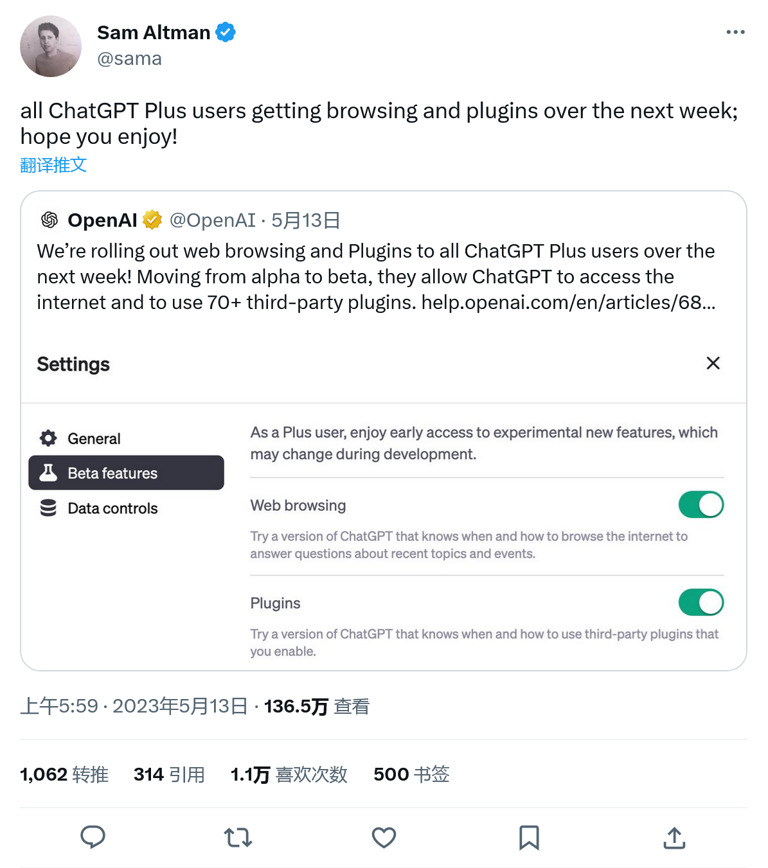 ChatGPT 上线联网和插件功能,Plus 用户下周可使用