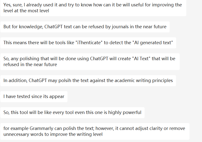 总的来说,ChatGPT是有一定帮助的,但完全依赖它,可能会闹笑话,对于润色来说,它和其他一些现有的润色工具并没有过大的区别。