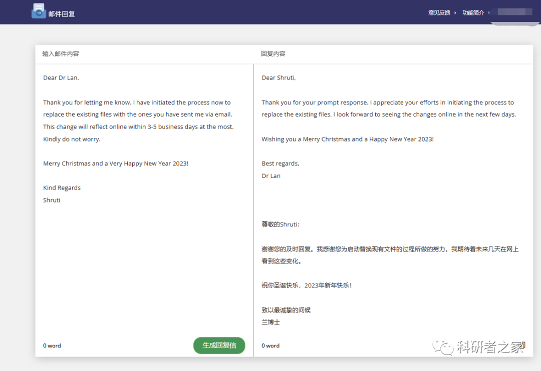 今天,基于ChatGPT算法的智能邮件回复,和语法纠错功能,已经加入官网SCI写作板块啦。