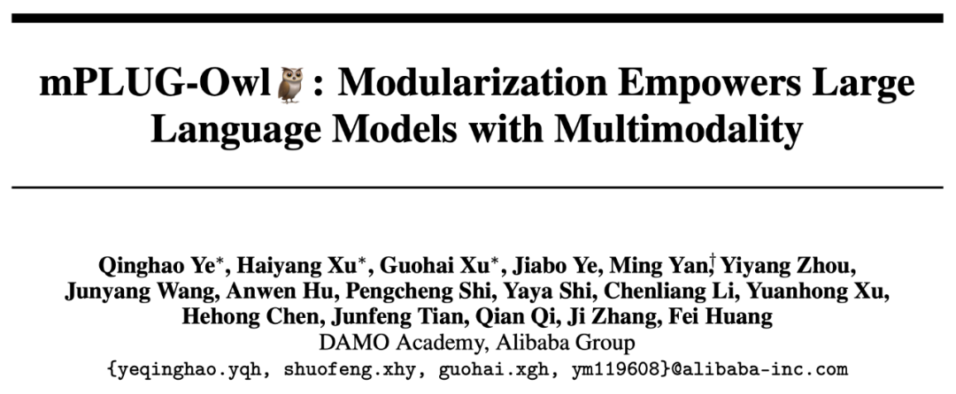 miniGPT-4的热度至今未减,距离LLaVA的推出也不到半个月,而新的看图聊天模型已经问世了。今天要介绍的模型是一款类似于miniGPT-4和LLaVA的多模态对话生成模型,它的名字叫mPLUG-Owl。- 论文链接:https://arxiv.org/abs/2304.14178