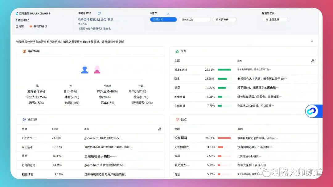 它支持亚马逊上的所有市场,包括中国、美国、英国、澳大利亚和加拿大,并且可以导出CSV格式的评论数据。在Shulex VOC中,ChatGPT被用来分析产品评论,从而帮助企业了解消费者的需求和偏好。这对于指导产品开发、市场营销和客户服务策略非常有帮助。