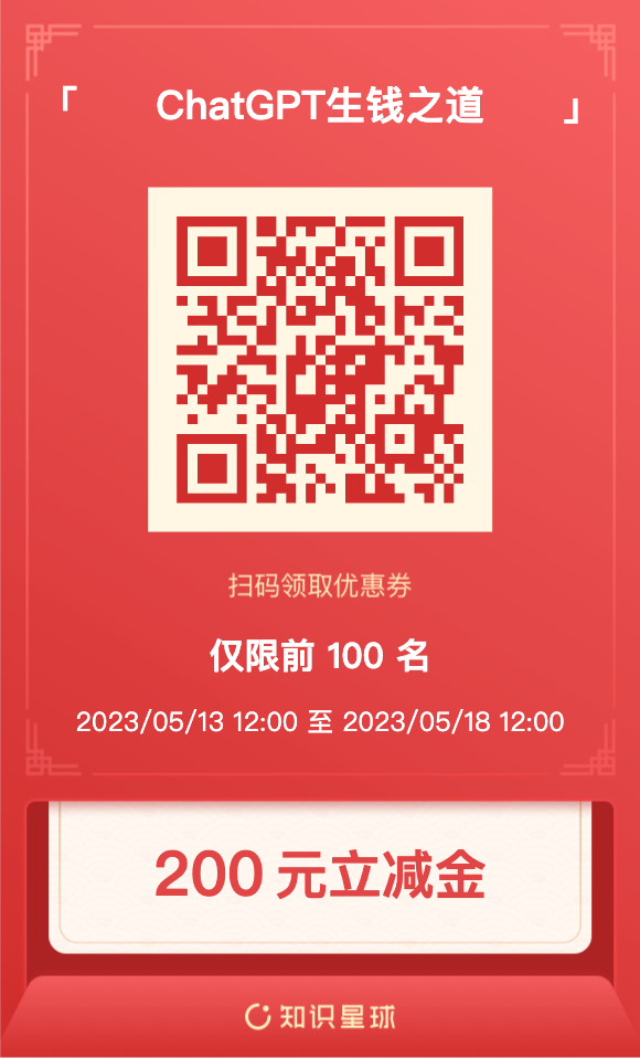 因此,我们联合技术大牛,创建了一个ChatGPT知识星球社群,为对ChatGPT感兴趣的朋友,建立一个可以交流和获取资源的平台!