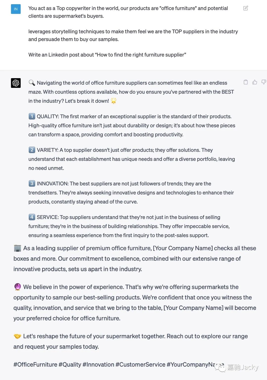 如果您对ChatGPT在外贸工作中的应用感兴趣,想要深入了解并提升自己的相关技能,欢迎关注我的公众号,这里有更多的实用技巧和最新资讯等待着你。而且,我会定期在公众号上举办直播活动,未来也会邀请更多国外AI行业专家分享他们的经验和见解。