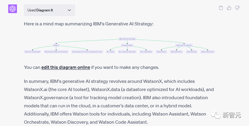 然后,ChatGPT 会根据刚刚总结的摘要,用 SchemramIt 插件来创建思维导图。