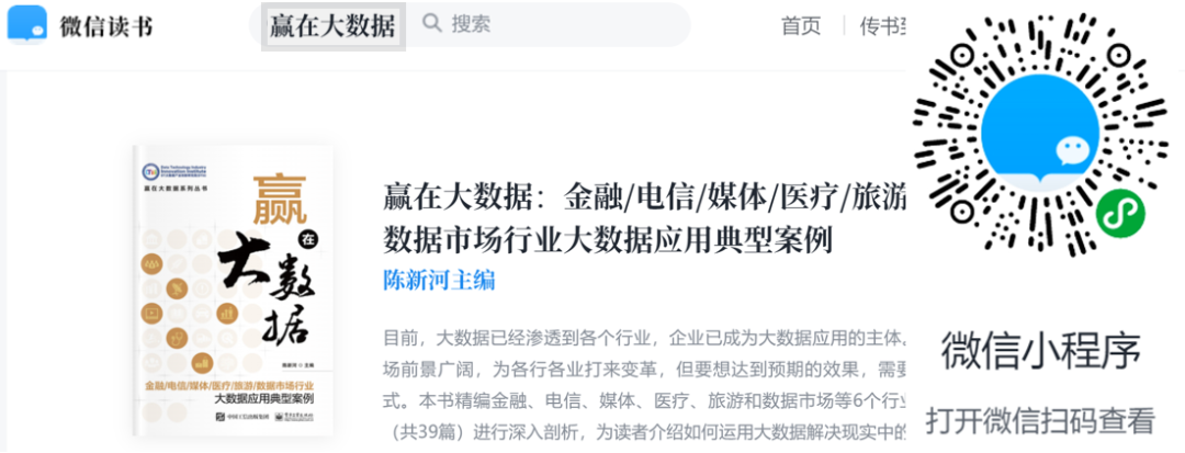 (4)《赢在大数据:政府/工业/农业/安全/教育/人才行业大数据应用典型案例》。
