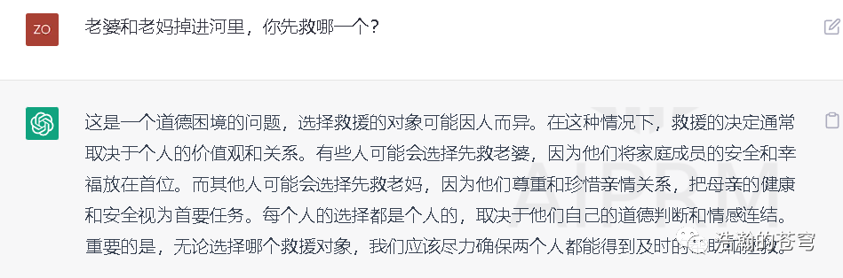 GPT 的回答条理清晰。不过我不建议你这么回答你老婆,除非你想跪搓衣板。