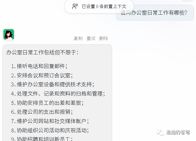 1、先问 GPT“请问办公室日常工作有哪些?”