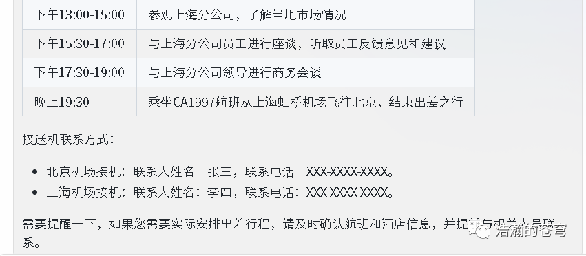 3、给老板撰写行程