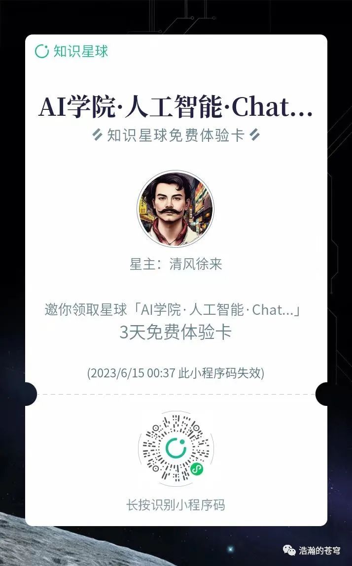 2、另外,为了方便交流,做了个知识星球“AI 学院” 。不懂就问,有问必答。准备了10张3天免费体验卡。长按加入,先到先得。