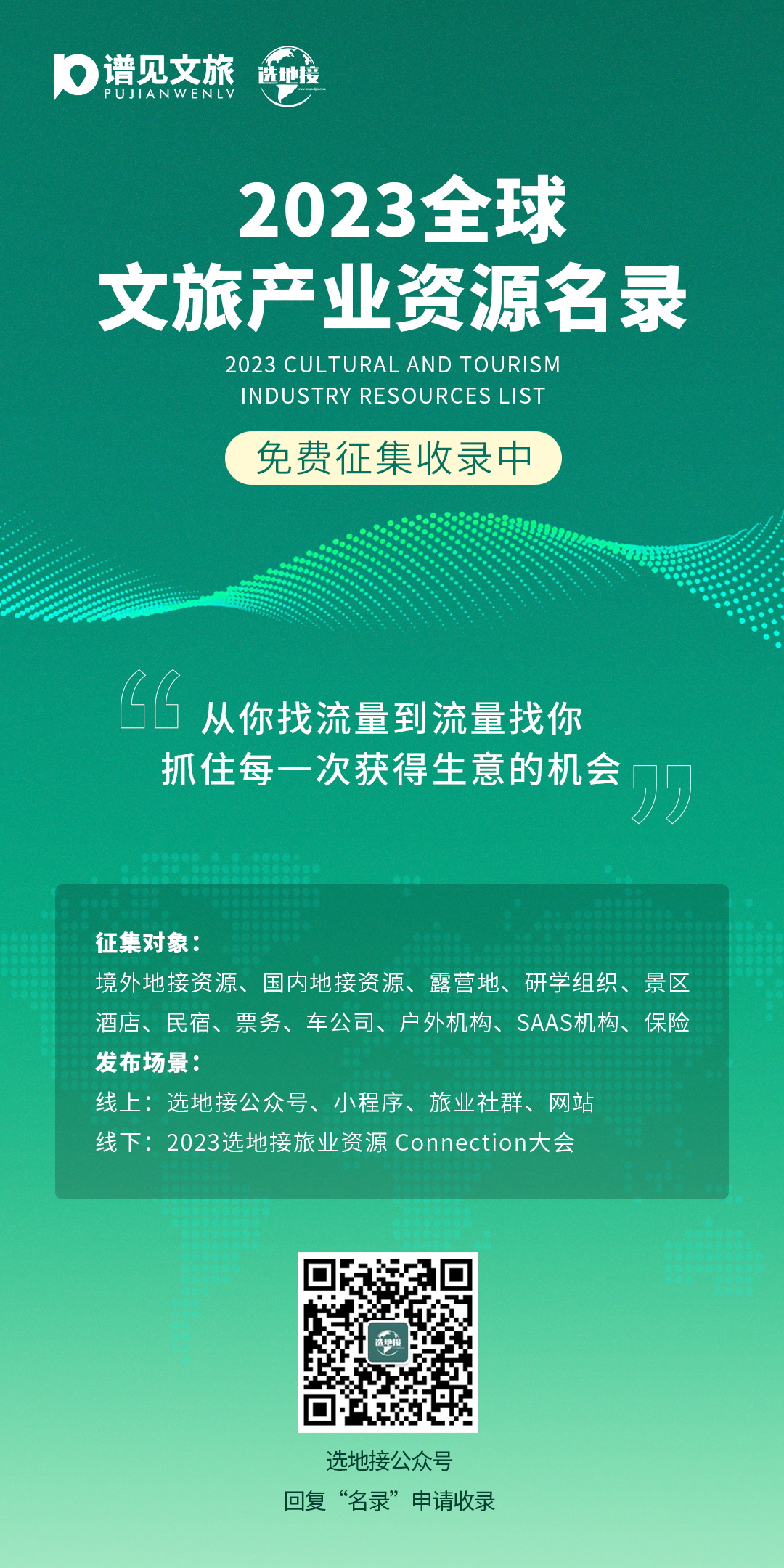 选地接(www.xuandijie.com)是全球旅游目的地资源营销平台,帮助全球旅游目的地优质资源和中国旅行企业建立连接,帮助优质资源找到生意。
