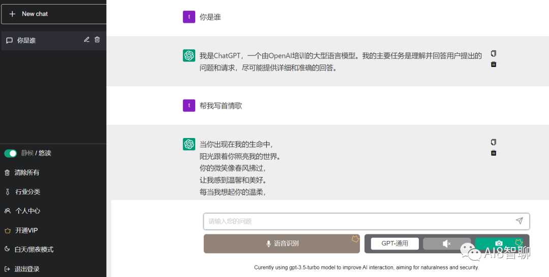 可以确认站点后端就是 OpenAI ChatGPT 模型了