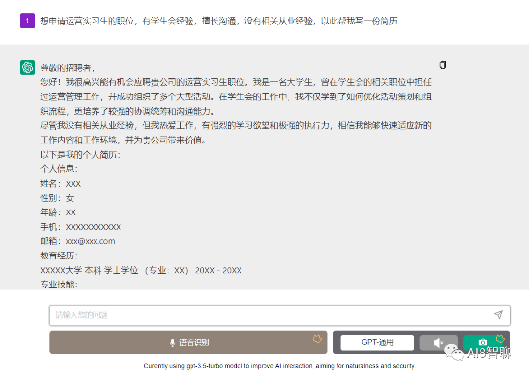 还可以让它为你写简历: