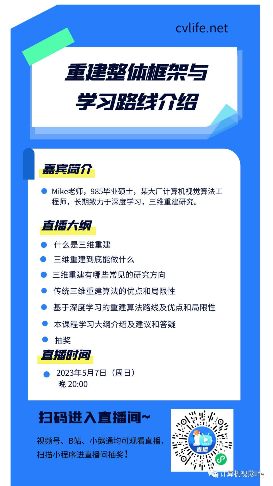 今晚我们将开奖公开课《三维重建整体框架及学习路线介绍》,为大家全面梳理三维重建的方方面面。