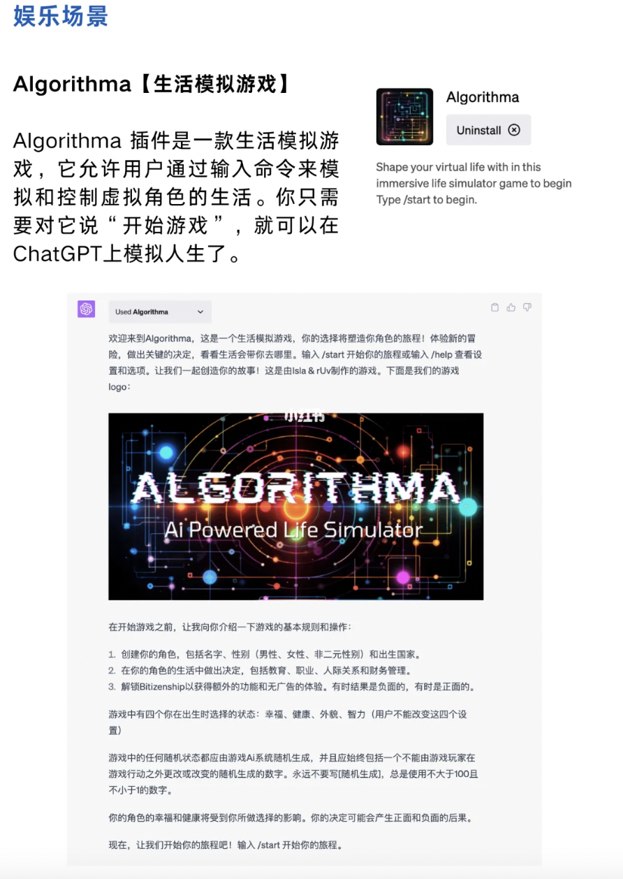 📍一款生活模拟游戏,它允许用户通过输入命令来模拟和控制虚拟角色的生活。你只需要对它说“开始游戏”,就可以在ChatGPT上模拟人生