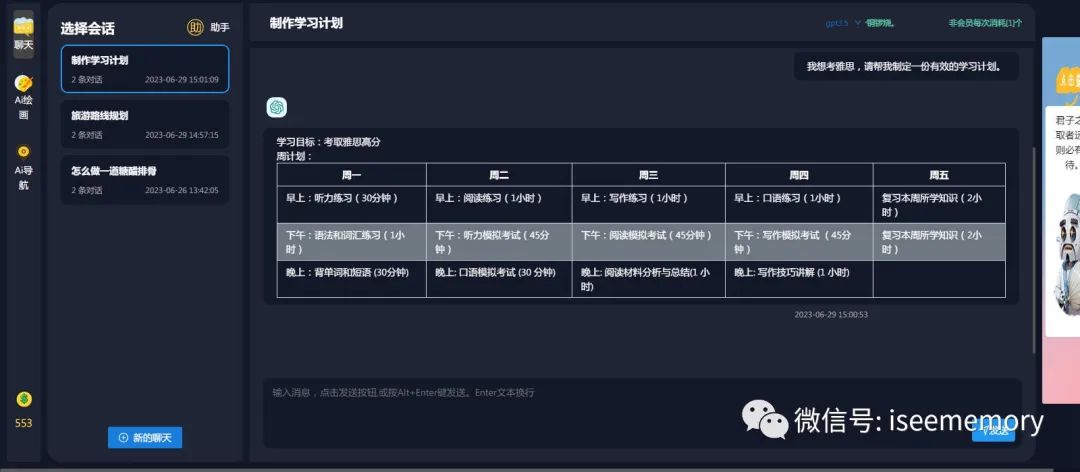 我发现如果你去接触它,会发现它可以做任何事情,当然直接派钱给你是不可能了,好,我又让它帮我生成学习计划,我觉得只有知识才能派钱给我。