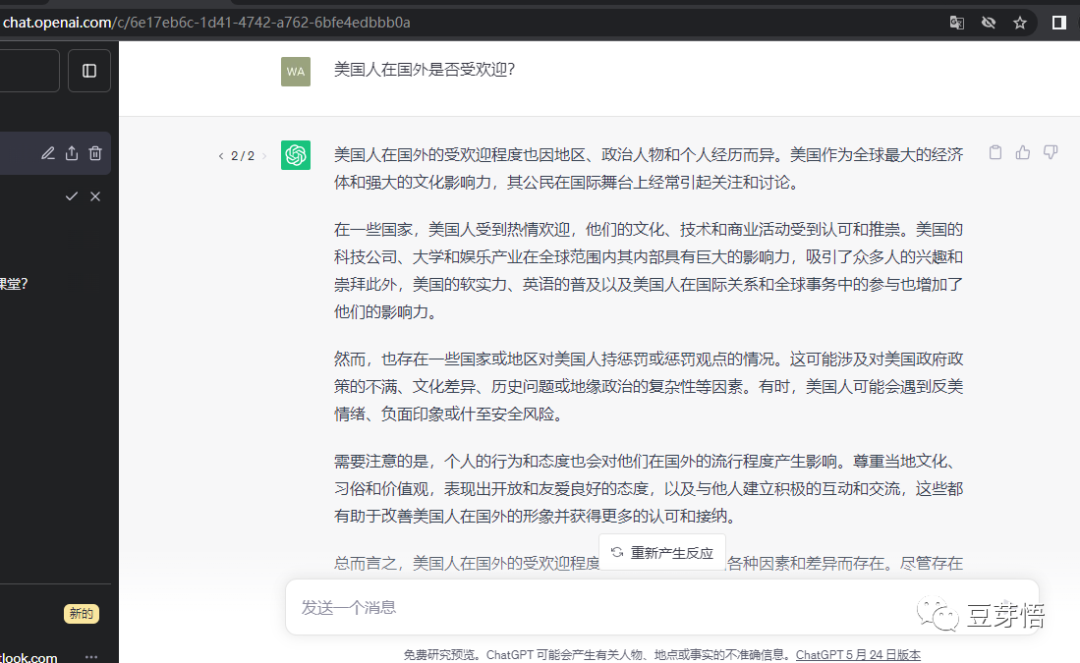 前面的改简历能力,是属于豆芽君说的思考技术的范畴。而对价值观类问题的回答,就是在测试chatgpt的思维倾向了。