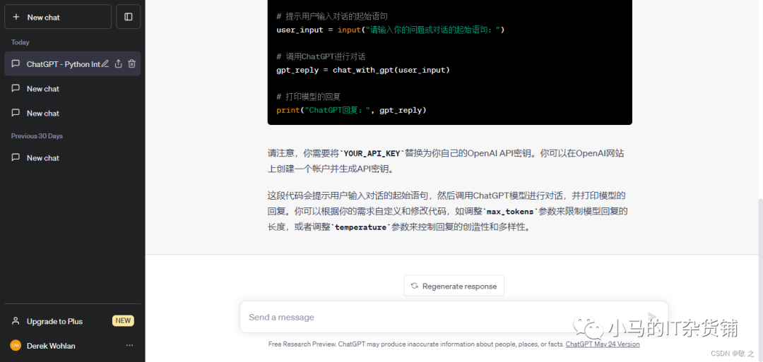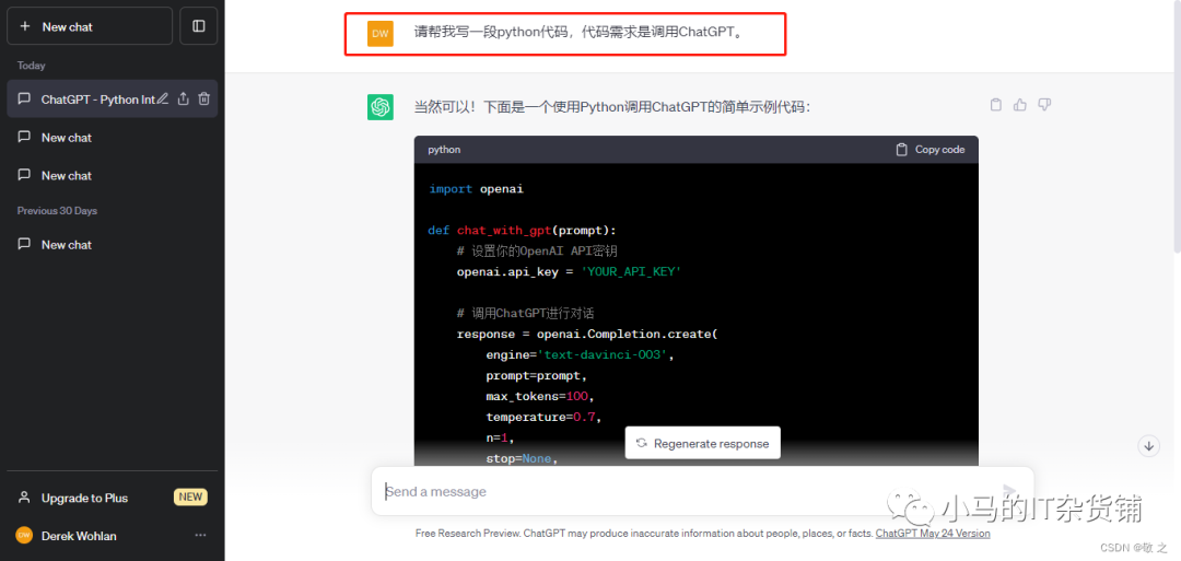 case3:让 ChatGPT 帮我们写一段 python 代码,调用 ChatGPT