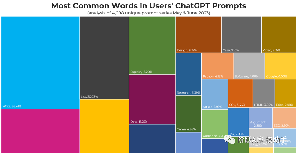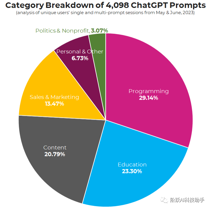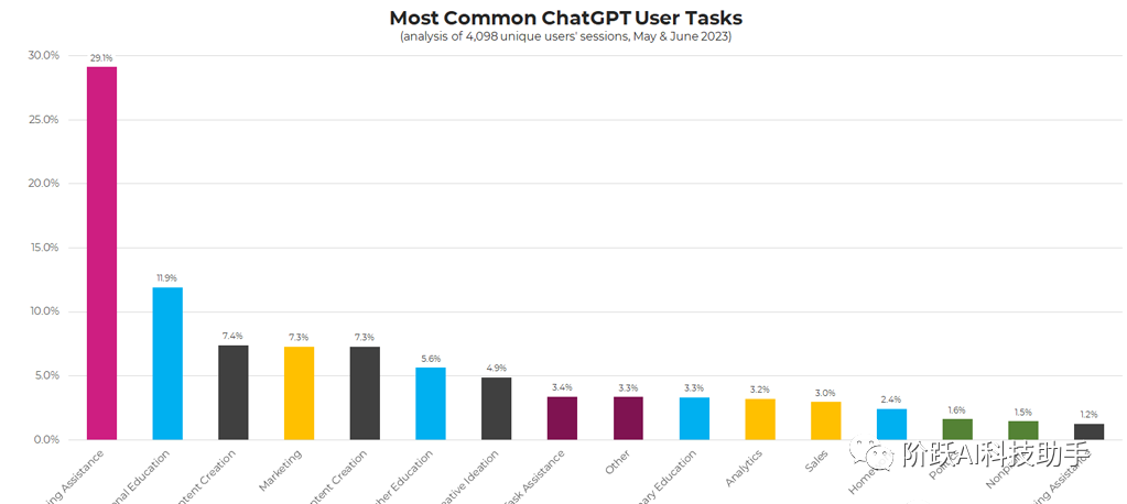 如果再细分的看这些用户都拿 ChatGPT 做啥,可以看到最大的几个应用场景: