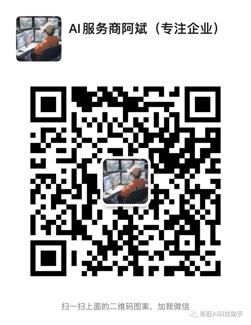 如果你在当下或者未来可能有AI方面的需求,或者有AI方面的合作欢迎加我微信,共同探索AI在发展中的可能。