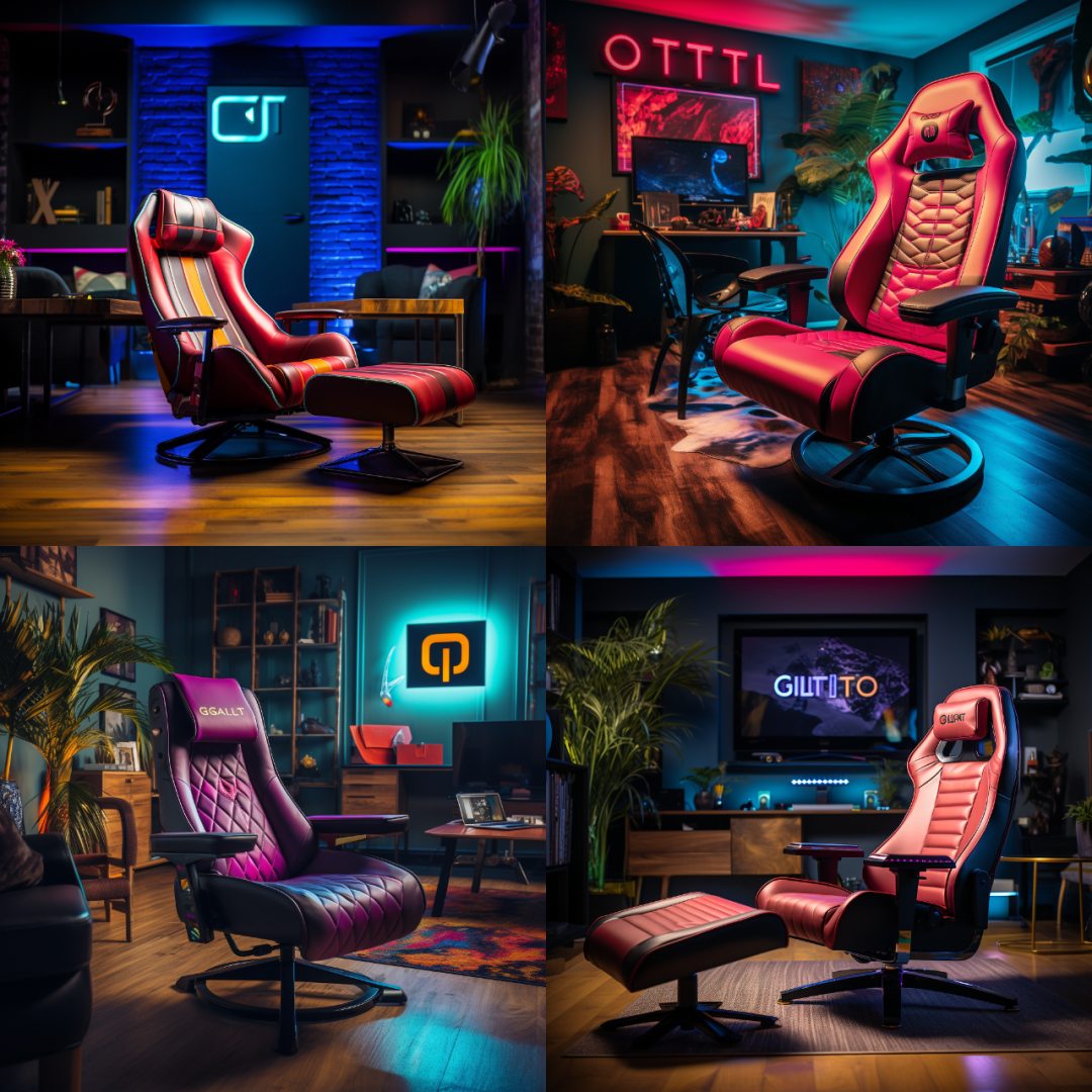 /imageprompt:Photography by a gaming brand, a panoramic view of a living room with a gaming chair as the focal point, captured with a wide-angle lens to showcase the chair's ergonomic design and edgy aesthetic, modern and dynamic background with vibrant colors and sharp lines, immersive and stylish style, 4k, photorealistic, ultra detailed