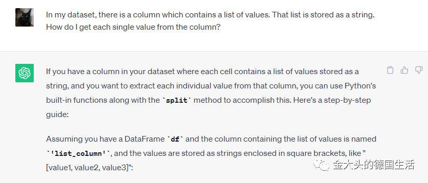 经过简单的对话,ChatGPT已经理解了我的诉求,而且提供了一个专属于我的问题的解决方案。更棒的是,所有的解决方案都会以code snippet的形式嵌在对话框里,可以直接复制。