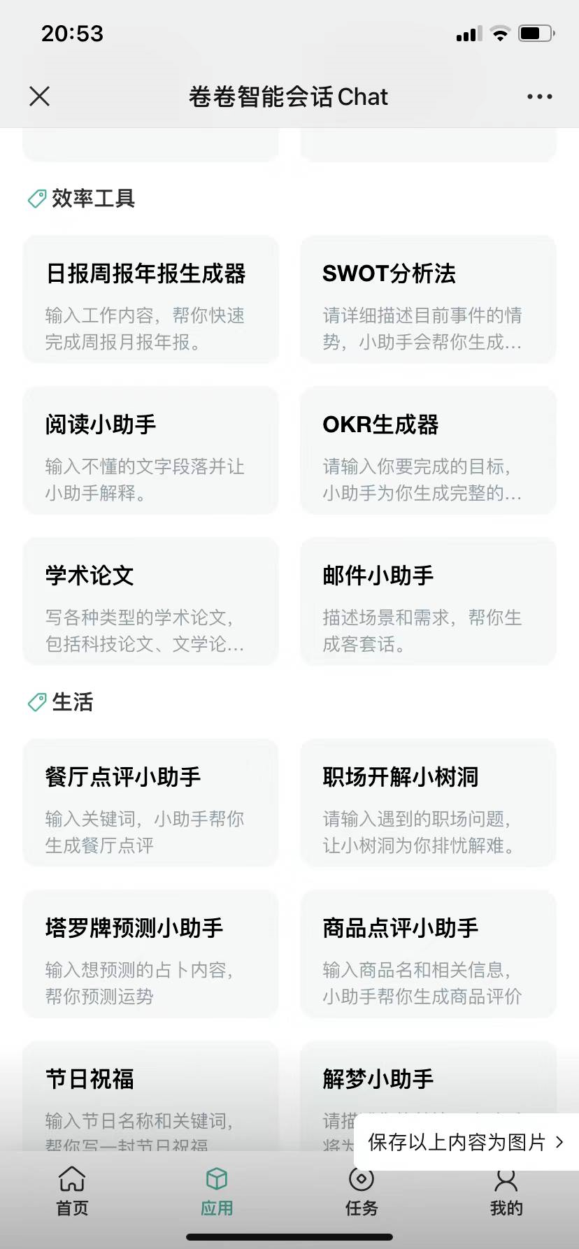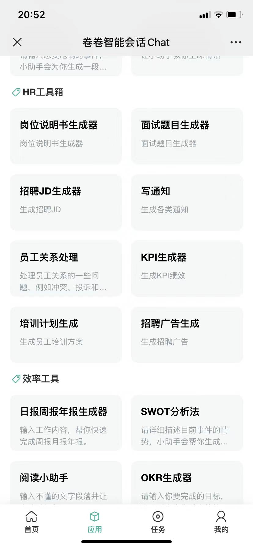 新增各类应用工具模板:HR工具箱、效率工具招、生活工具、创作助手等实用的AI功能。