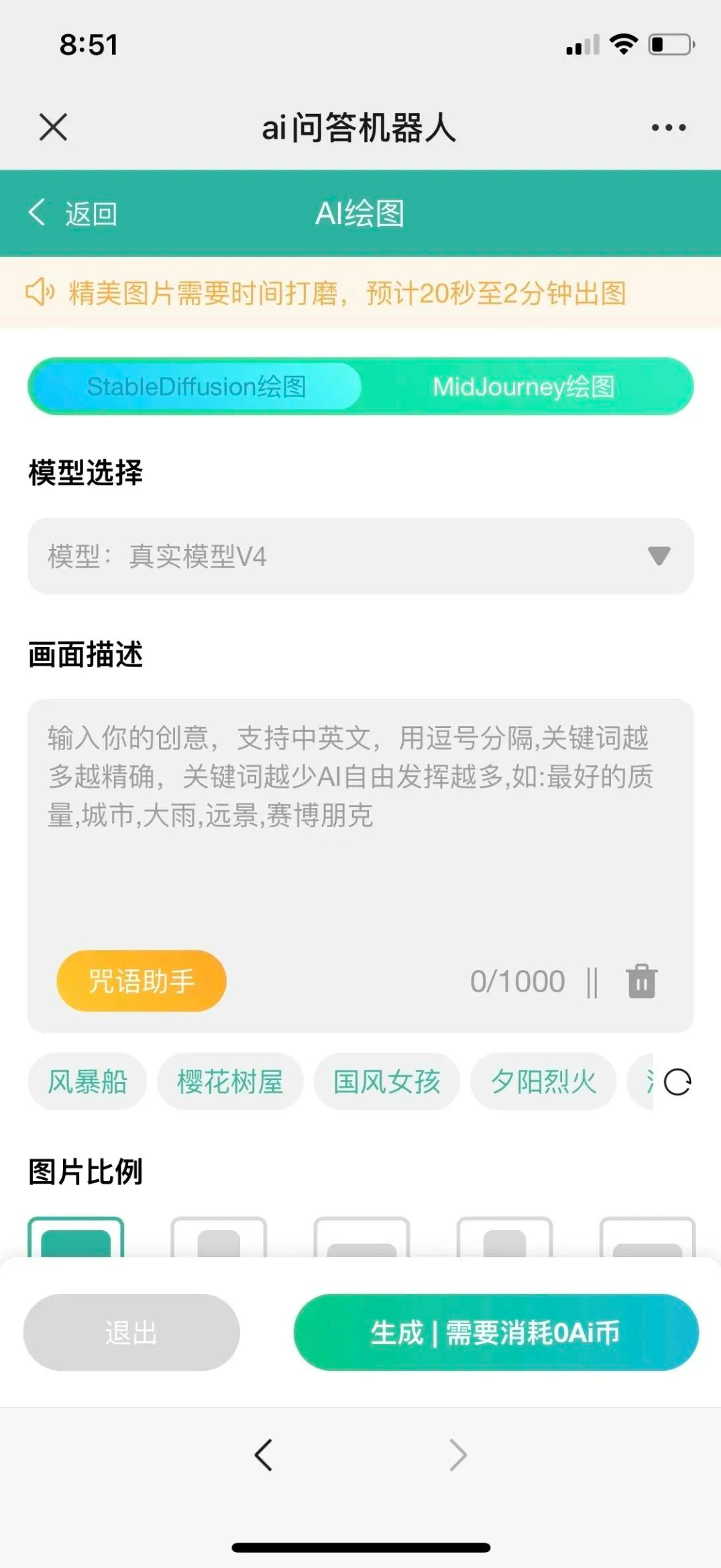 支持当前最强AI绘画引擎MJ和SD,输入描述自动出图,超高质量