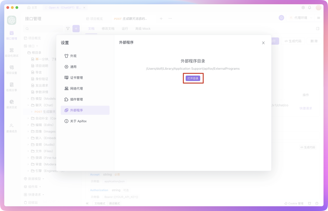 将该脚本文件放置于 Apifox 的外部程序目录下以供调用: