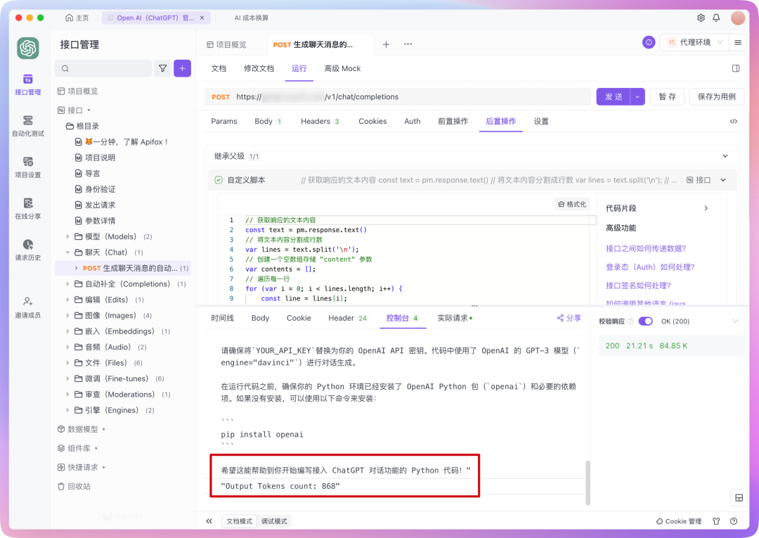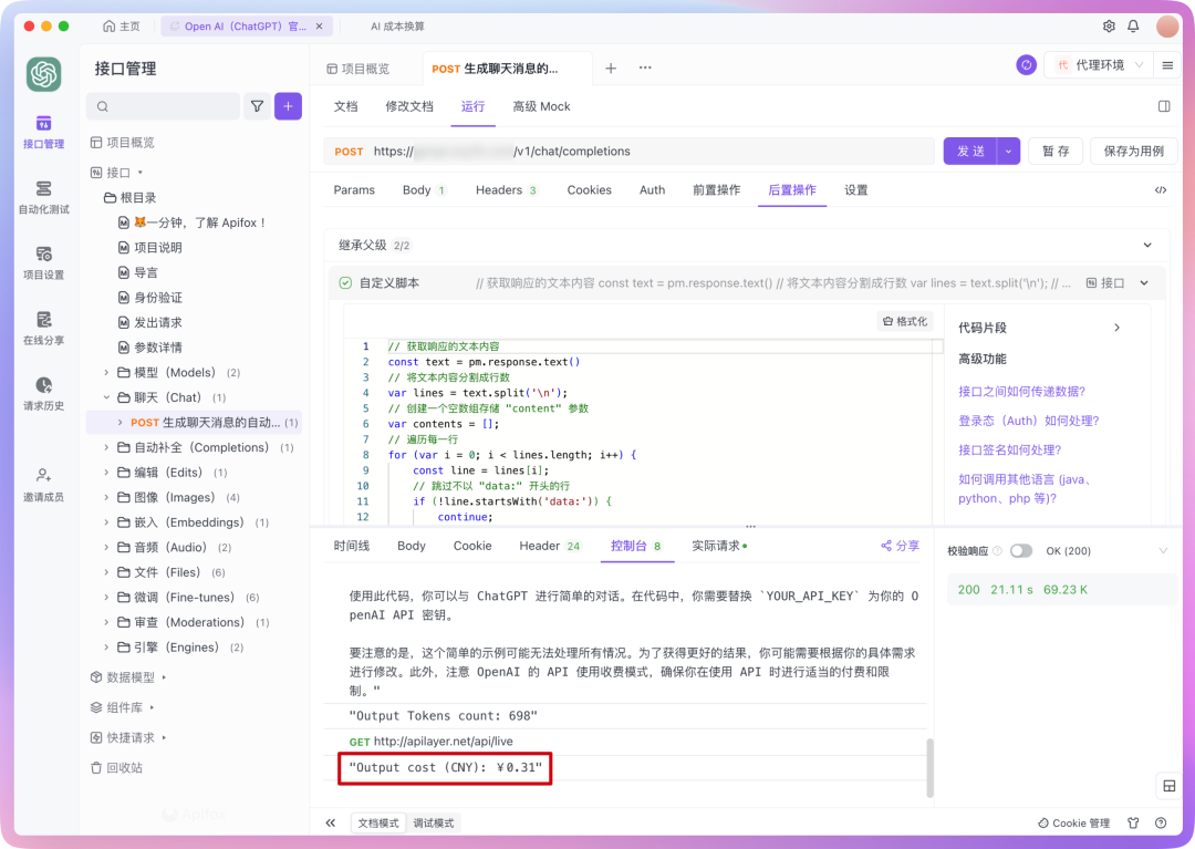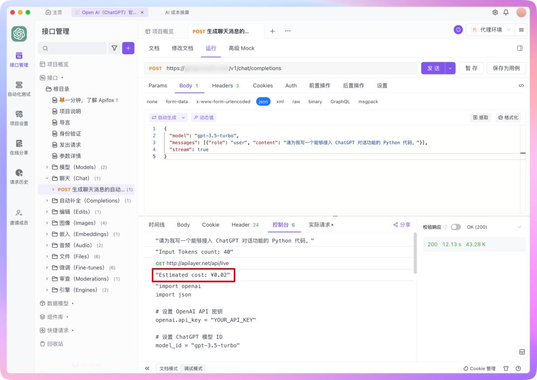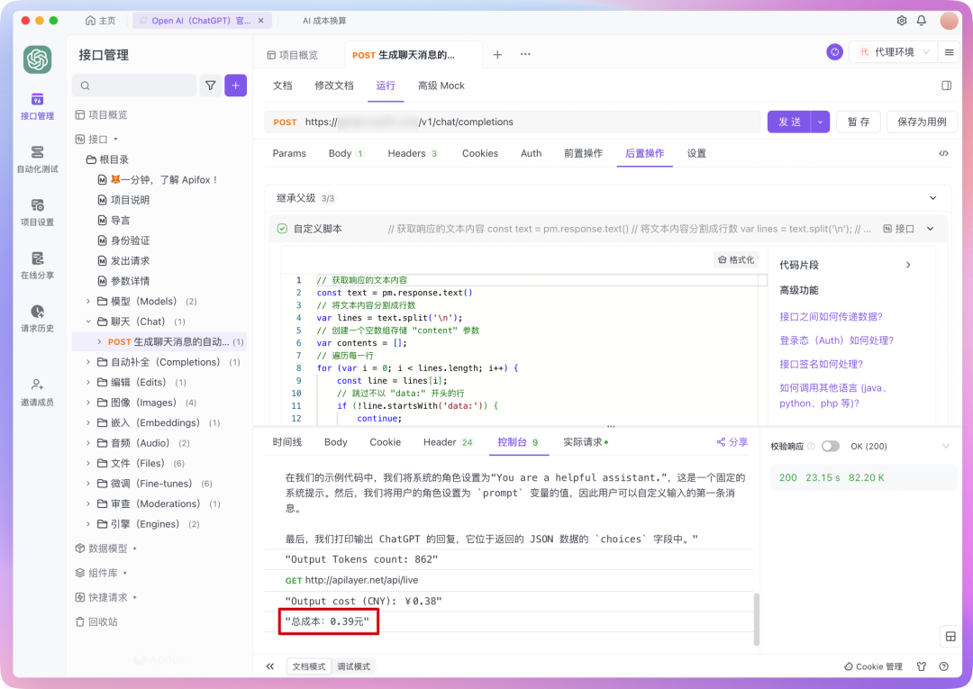 现在你不仅可以在 Apifox 中愉快地调用 ChatGPT API,还能够清楚掌握你的调用成本,做到心中有数。