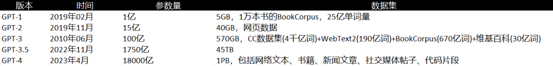 相对来说,大力出奇迹这句话再合适不过了。通过下表,可以看到模型参数量,喂的数据量都是指数级增长。GPT-2的参数15亿已经超过了Bert的3亿参数了。![]()