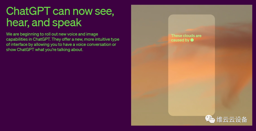 OpenAI表示,将在接下来的两周内,向ChatGPT Plus和企业版用户提供看、听、说功能。语音功能将在 iOS 和 Android上使用,图片识别则支持全平台使用。