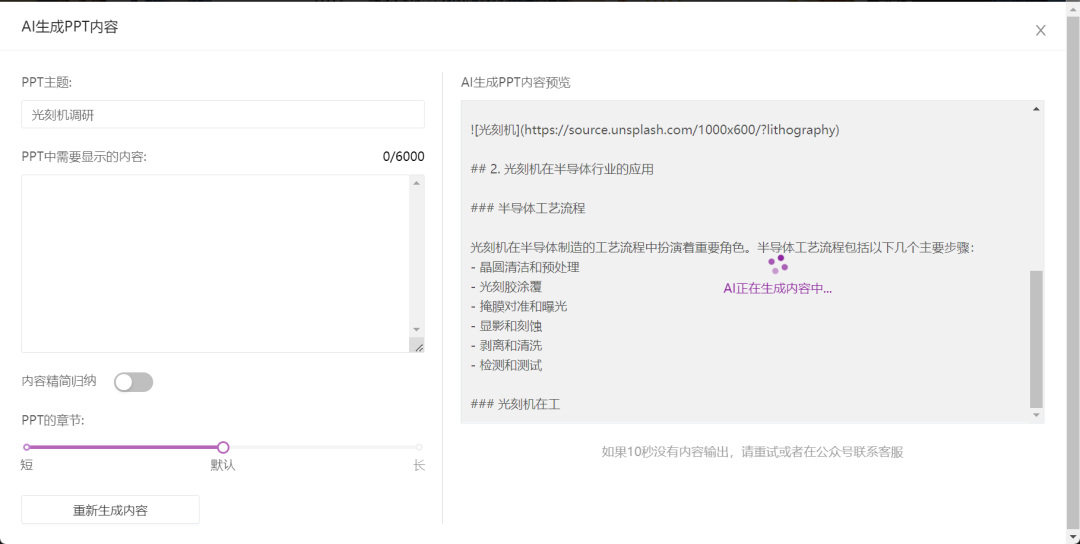 只要输入主题,AI就会自动生成内容,并且排版成PPT。 但是,理想很丰满,现实还很骨感。自动生成的内容质量很一般。大家可以自行体验一下。