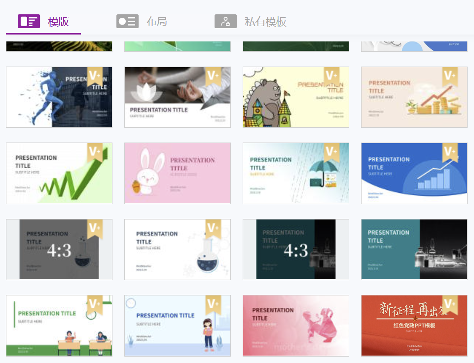 登录后,点击我的文档,点击工作总结。 就进入PPT编辑页面:左侧是编辑区、右上是预览区、右下是排版区。 ![]()