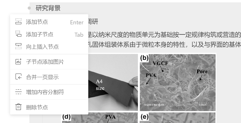 编辑区可以设置封面和文档内容。文字、图片都可以粘贴到编辑区。 点击左侧的按钮,可以添加节点及子节点。 一个节点就是一页PPT。 ![]()