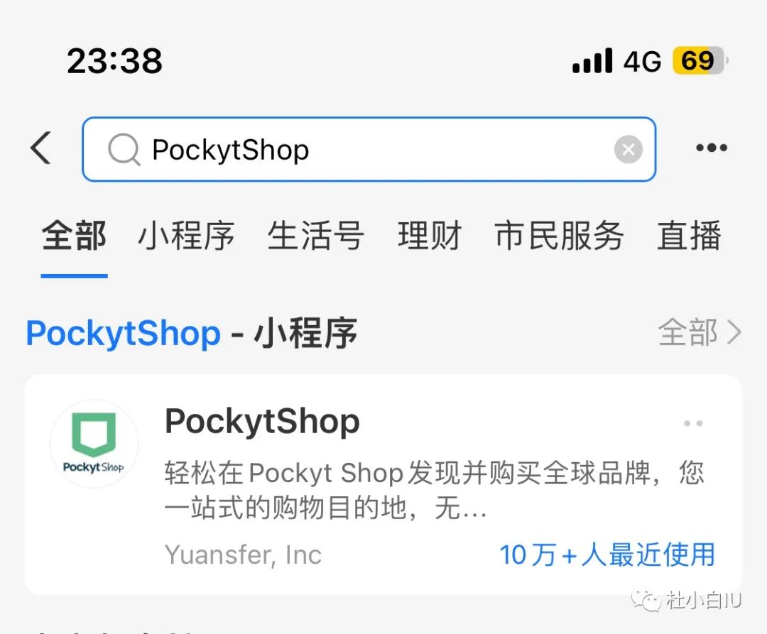 回到支付宝首页,搜索栏搜索「PockytShop」;