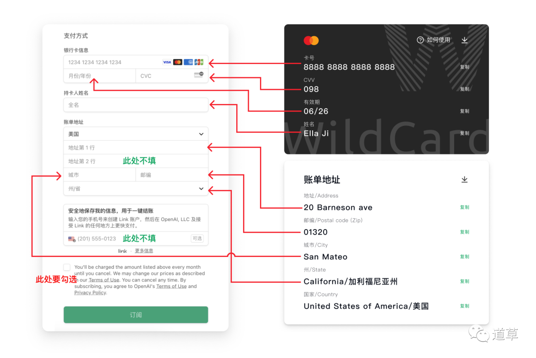 填写WildCard 虚拟信用卡信息
