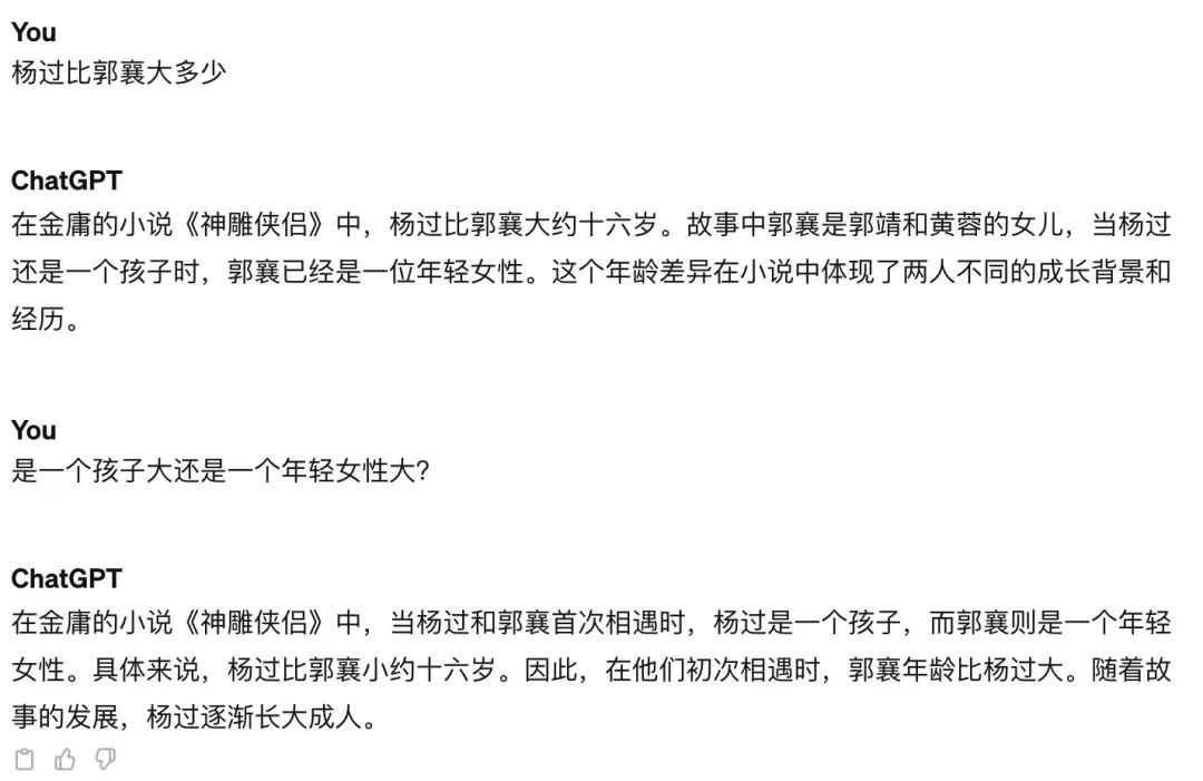 我问了一些电视剧人物相关的问题,感觉回答的不行,不知道是不是与训练数据有关
