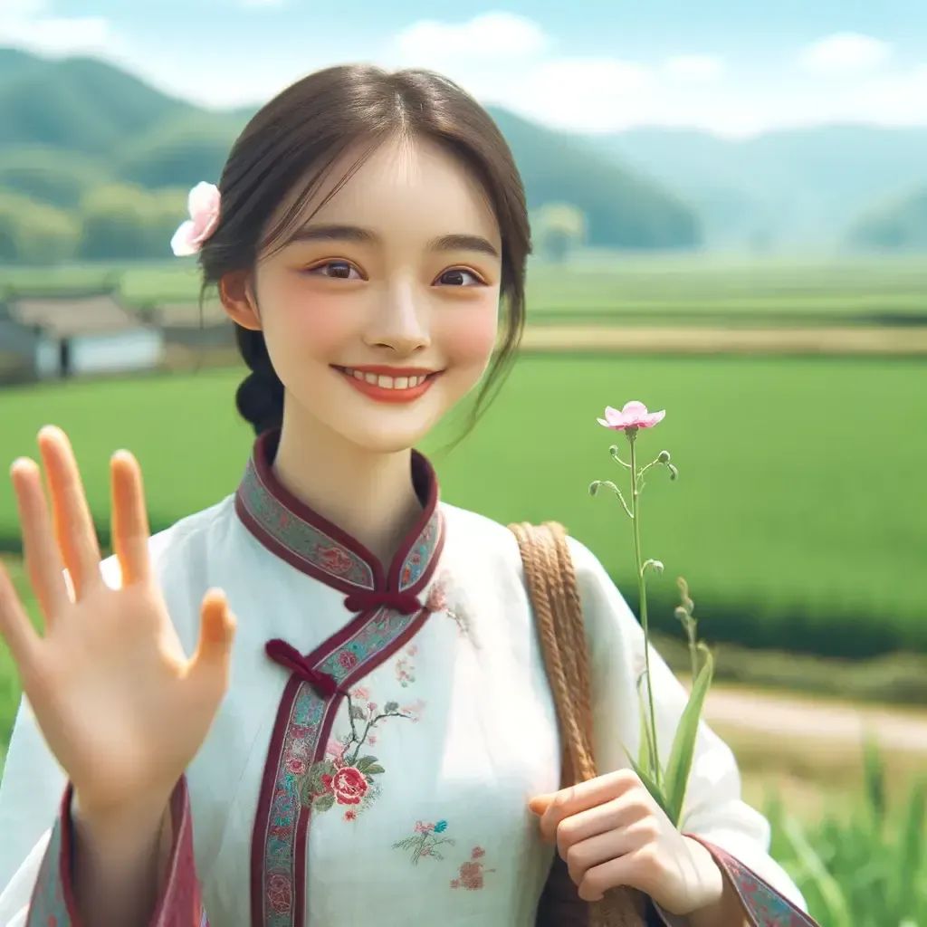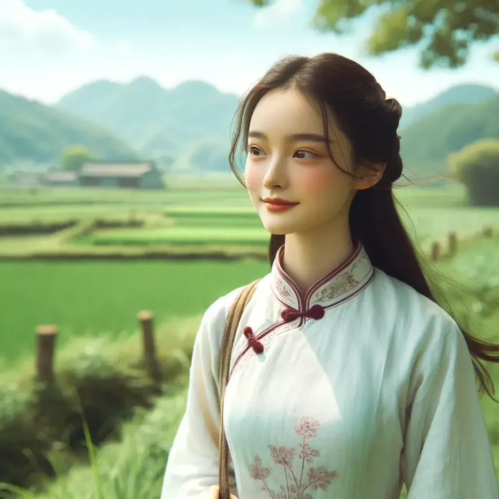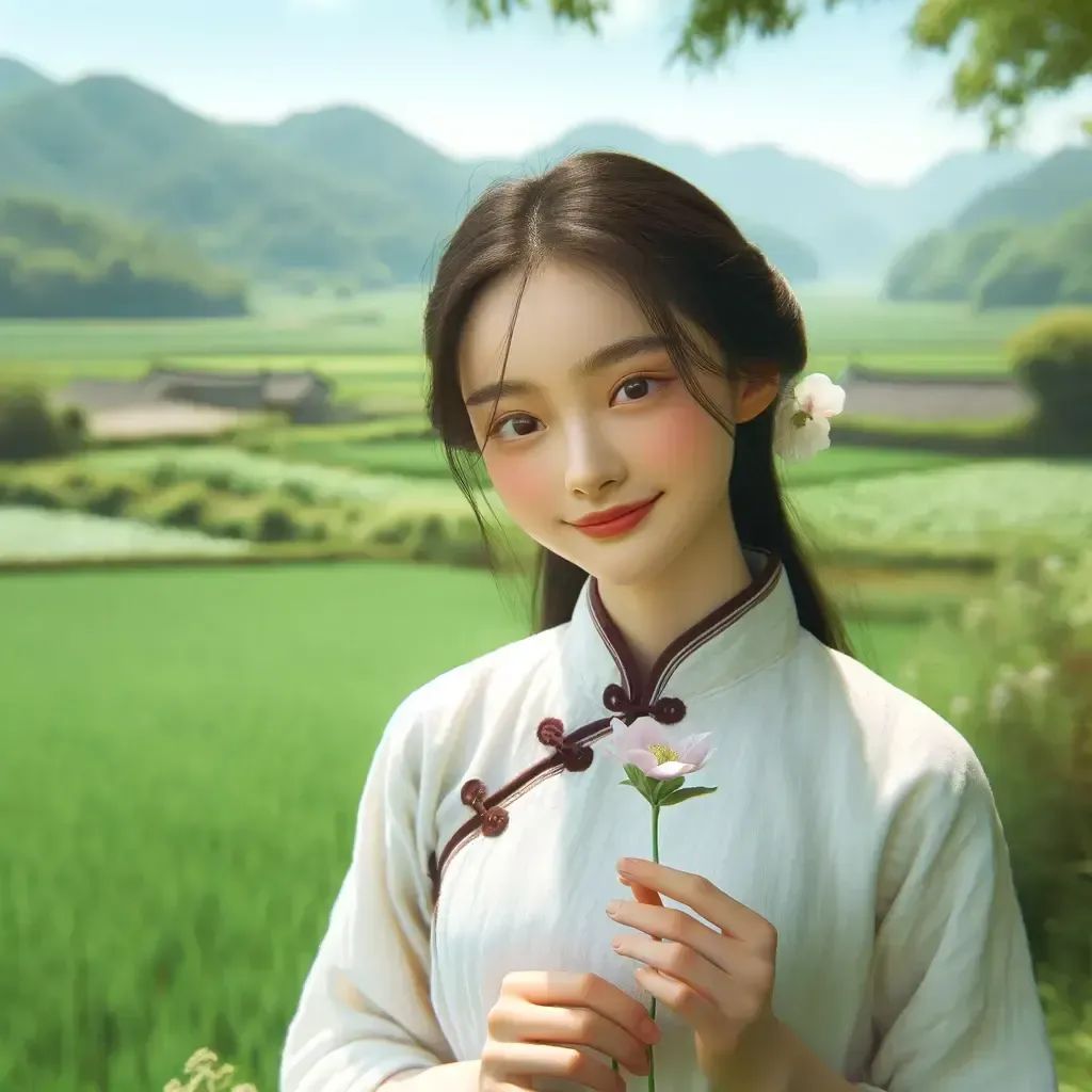Q: 给我生成一副画,一个中国乡村姑娘在田园中散步, 并返回seed值