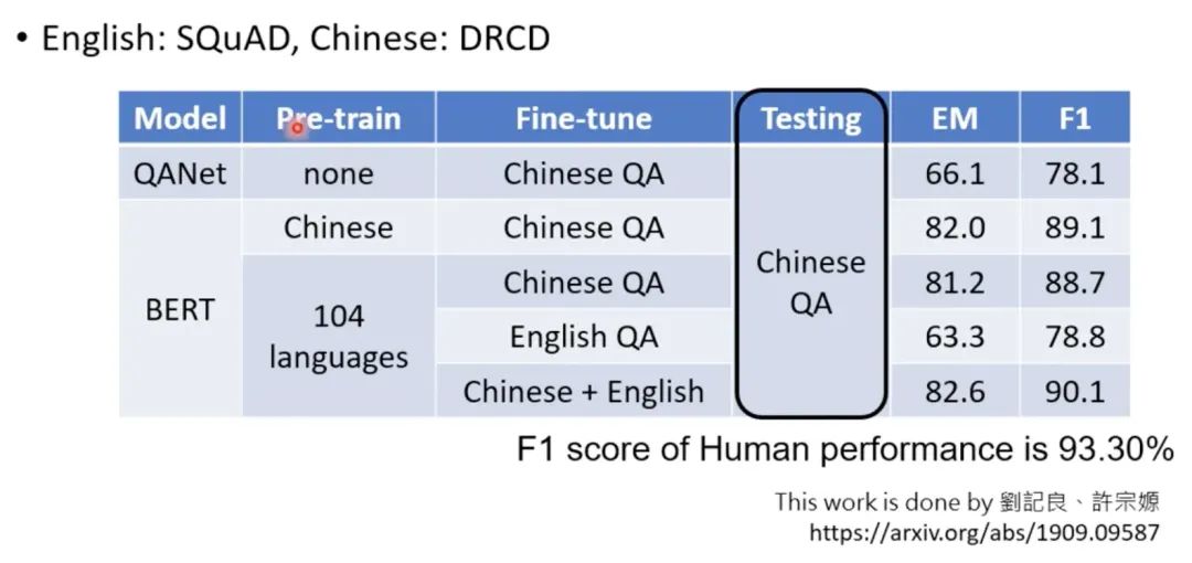 此外研究发现,在多重语言上做预训练后,只教某一语言的某一任务,机器也能自动学会其他语言的同类任务,如下图