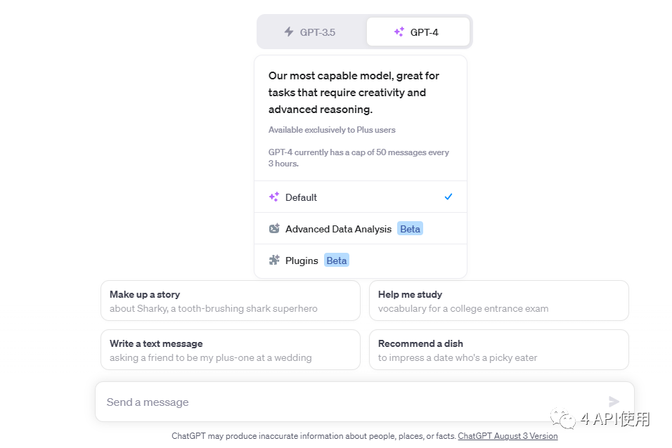 与GPT-4 API不同,ChatGPT账号更像是即插即用的产品。购买账号后,您可以直接在特定平台上与ChatGPT进行互动,无需任何编程知识。这更适合个人用户,尤其是在娱乐、学习和日常任务自动化等方面。