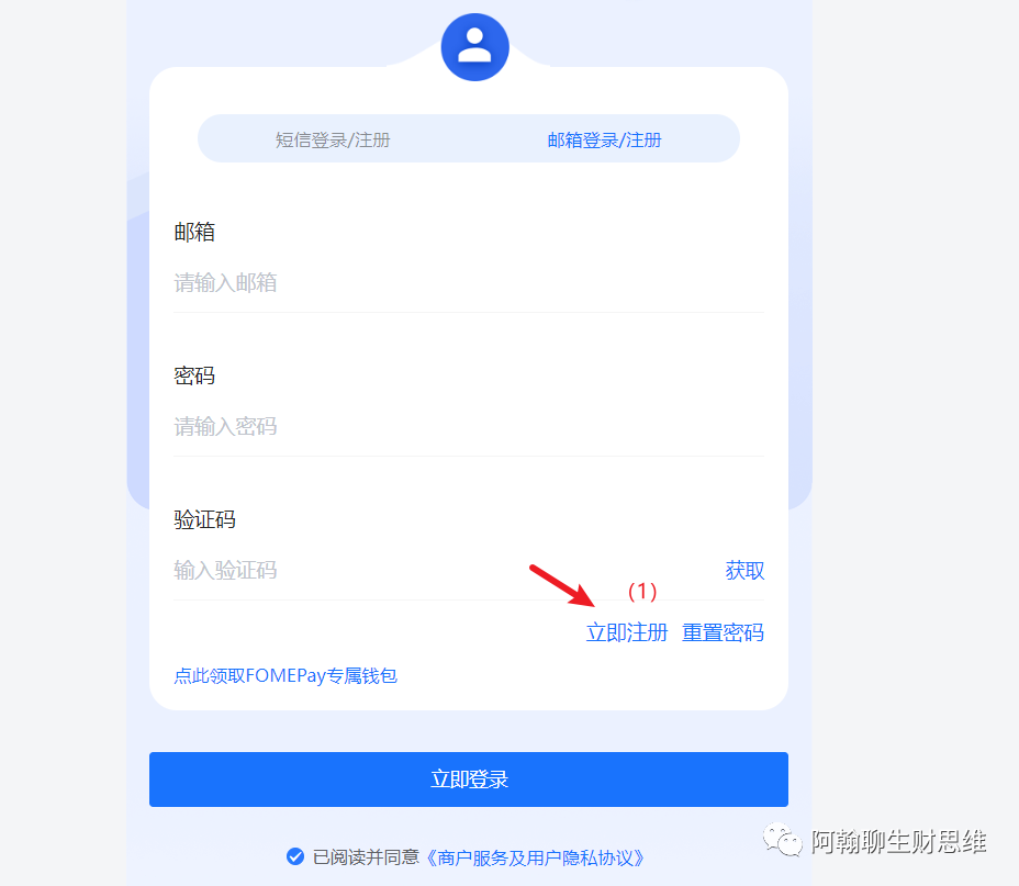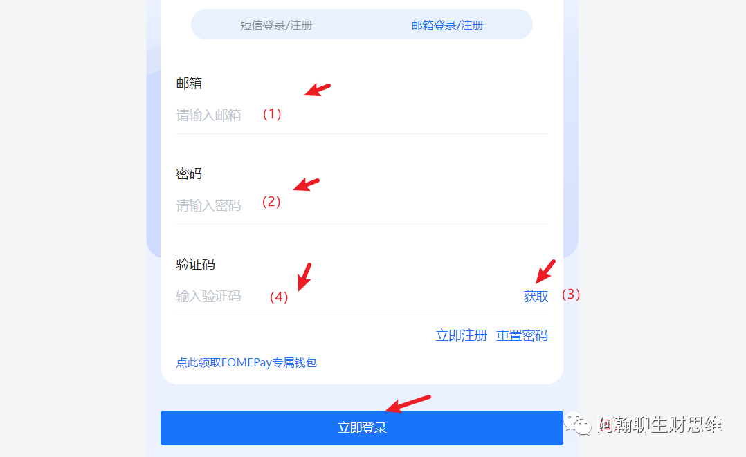 如果你不想用手机号登录,先点击上方的邮箱注册或登录,找到上方箭头所指的位置,点击立即注册即可。