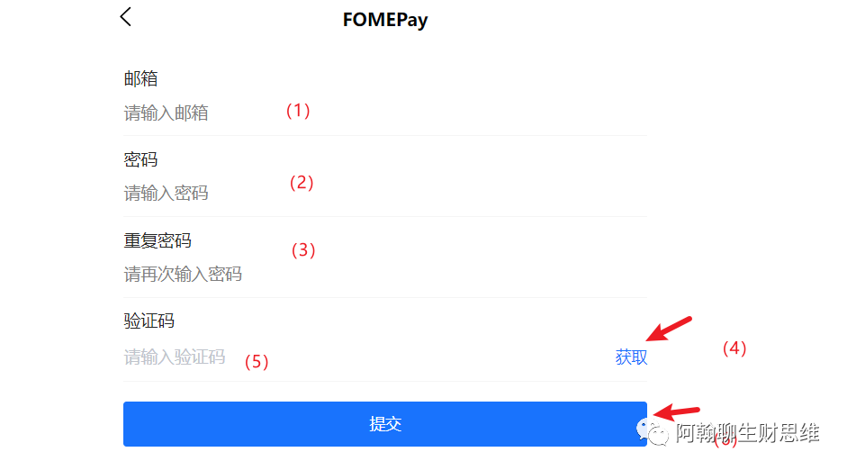 在上方输入你的邮箱,然后输入密码,确认密码,然后点击验证,这个验证是验证你的邮箱是否有效的。输入验证码后,点击提交。