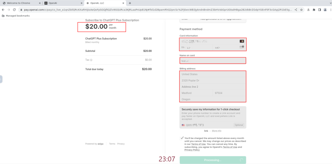 如下图,会提示填入虚拟信用卡的信息,卡号和地址这些信息在WildCard的虚拟信用卡上都可查到,填完点击订阅即可。