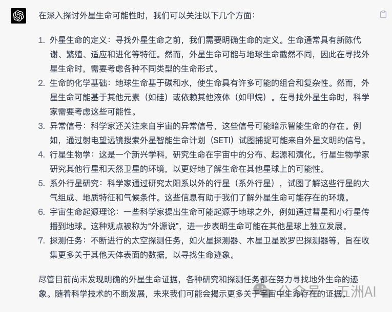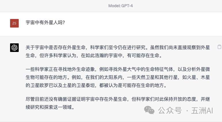 举个例子,我们问ChatGPT:“宇宙中是否存在外星人?”