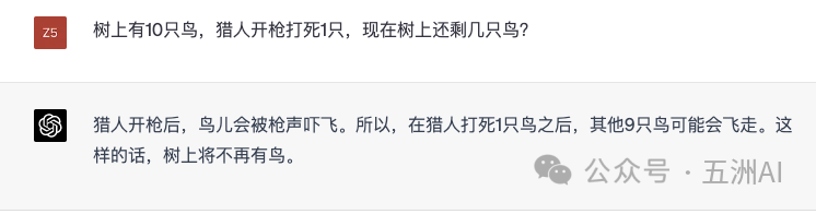 再看一个例子,我们向ChatGPT提出一个经典的脑筋急转弯题目: