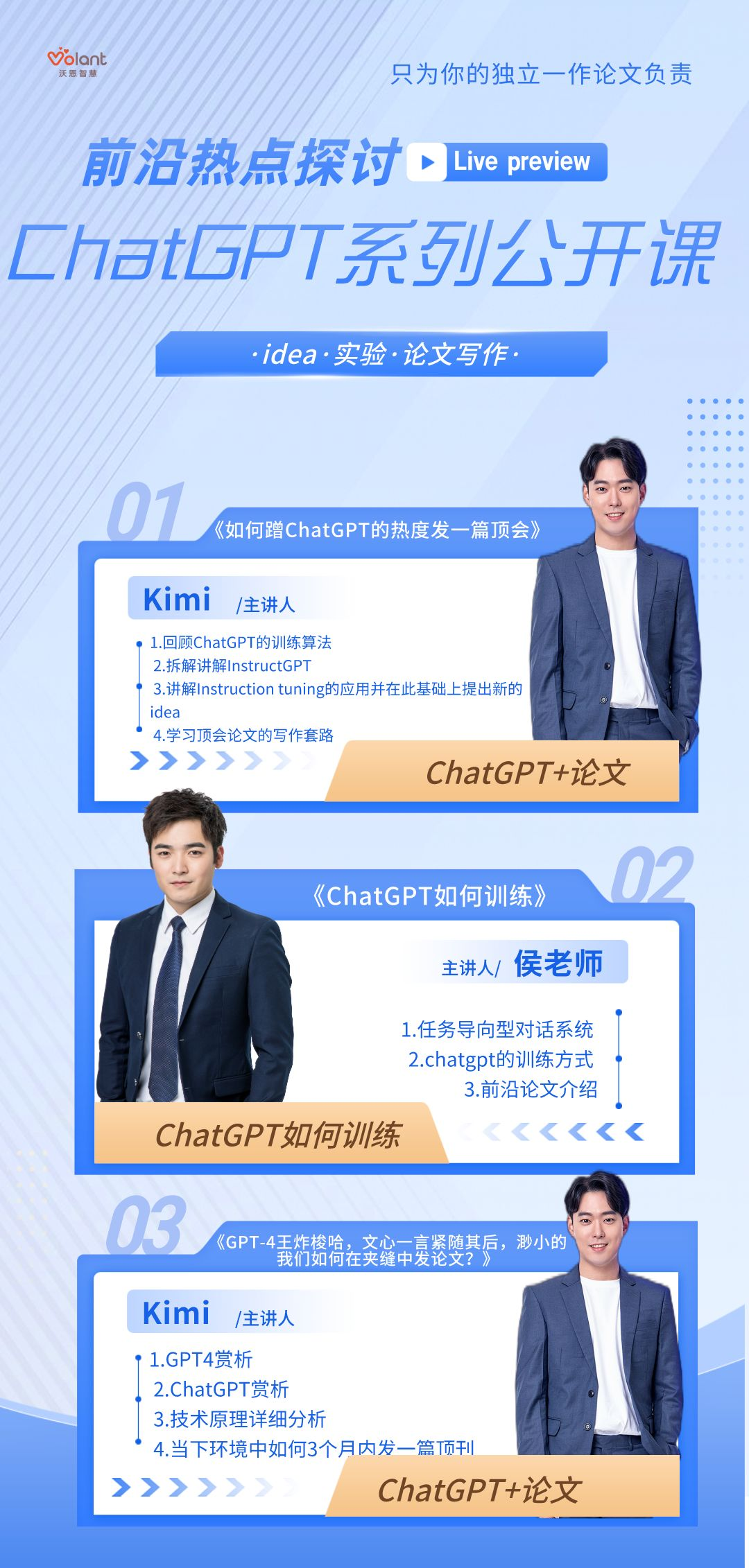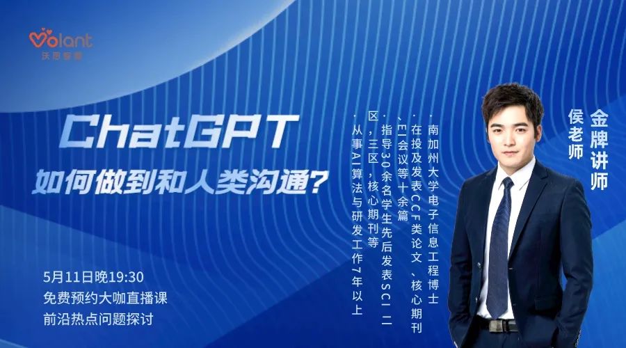5月11日,我们邀请南加州大学电子信息工程博士侯老师,和大家分享:ChatGPT如何做到和人类沟通。从ChatGPT的训练算法、模型原理,到如何基于目前的大模型提出新的idea,学习顶会论文写作套路!