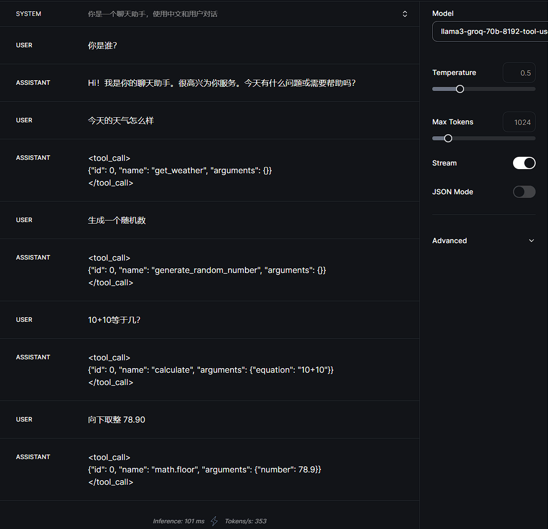 也可以在 Groq 的控制台[5]使用,70B 速度为 300+ token/s,8B 达到恐怖的 1000+ token/s,建议使用感受下~