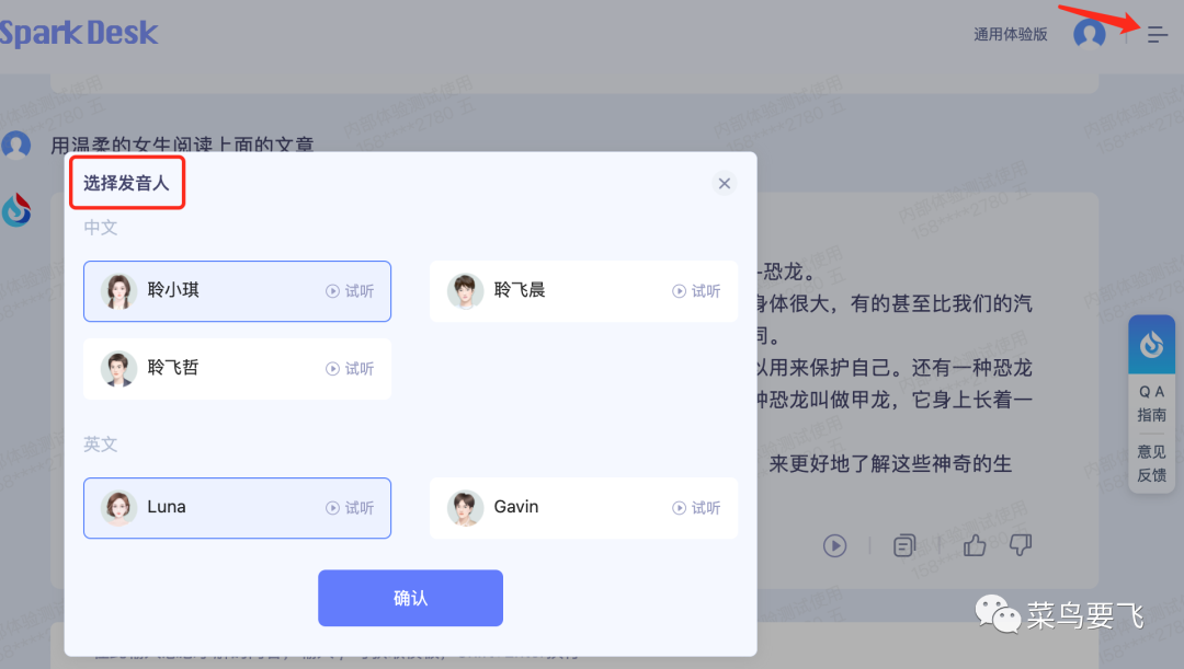 首先它提供的能力包括文本生成、语言理解、知识问答、逻辑推理、数学能力,编程能力、多模态等。好吧,这几乎是每个AI模型的基本能力。值得关注的是,讯飞模型除了支持文本输出外,还支持图片、语音和视频的输出,这些在发布会上也都进行了演示。我本来也是奔着这些来的,最后发现,体验版目前只支持文本输出,其它类型还在开发版,尚不支持。行吧,但既然发布会上进行了演示,想必后面也会很快上线,甚是期待。